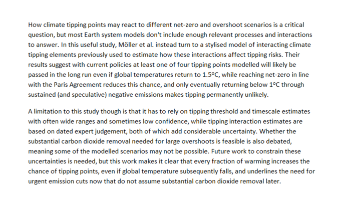 1/8/24 – Comment for Carbon Brief on a new paper on tipping point risks during global warming overshoot by Möller et al. (full comment here)